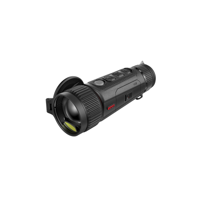 Kompaktní ruční termovize ThermTec Cyclops CP650 Čočka 50 mm. Optické zvětšení: 2,8x. Digitální zvětšení až 6x.Celkové zvětšení: 16,8x. Detekce až 2500m. Displej OLED 1024x768 px. Senzor s rozlišením 640x 512px 12µm, VOx. Úsporný režim (uspání). Napájení na integrovaný akumulátor pomocí USB-C vstupu. Napájecí kabel přiložen v balení. Provozní doba na baterie až 12 hodin. Váha: 550g. Vodotěsnost: IP67 (chráněno proti ponoření do vody. Ponoření na 30 minut do hloubky 1 metru). Technologie vylepšení obrazu: IDE, HDR